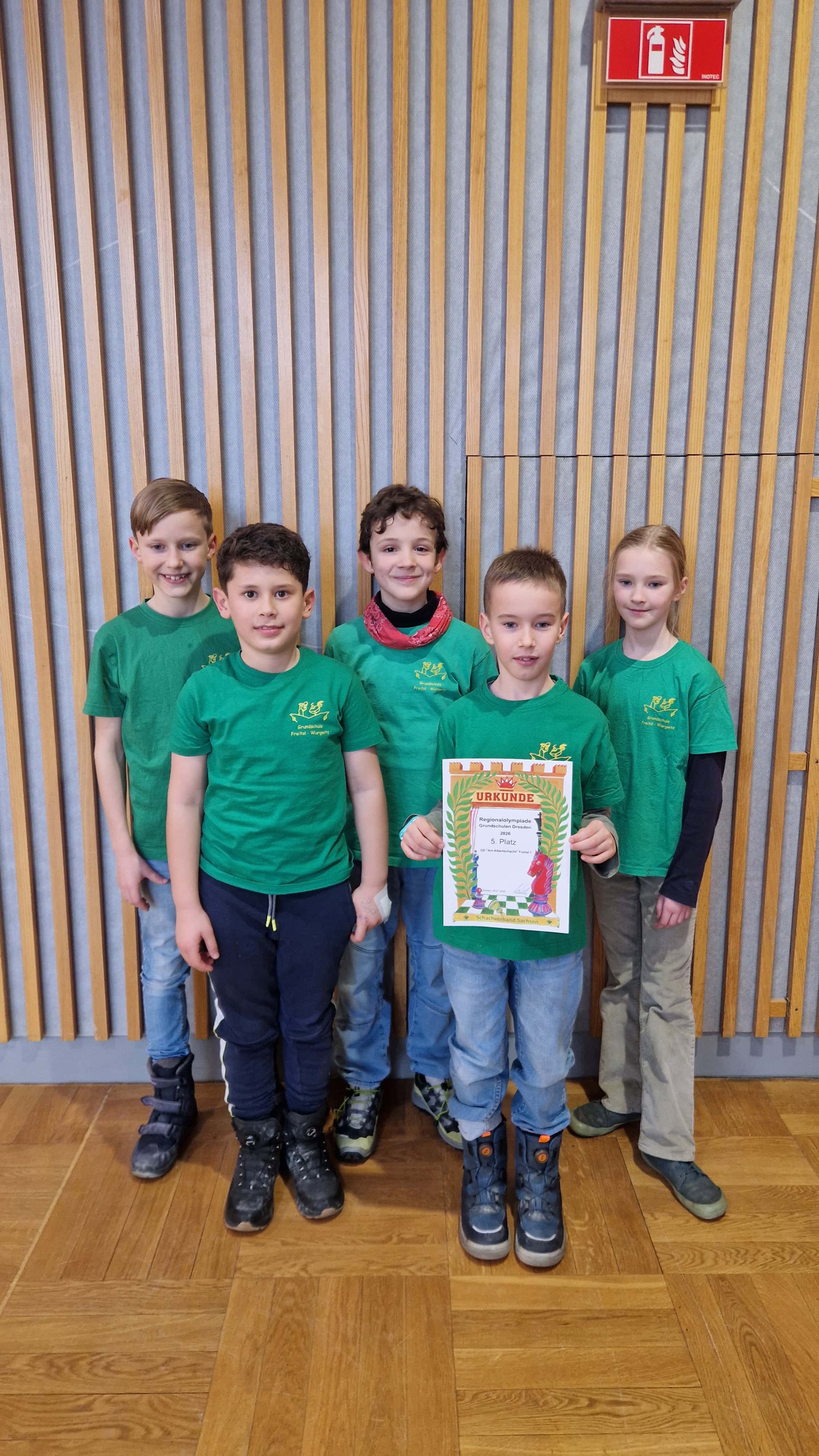Die Mannschaft setzte sich aus zwei Viertklässlern – darunter ein Mädchen – sowie drei talentierten Schülerinnen und Schülern aus der dritten Klasse zusammen. Mit großer Konzentration, Teamgeist und spielerischem Können zeigten alle eine beeindruckende Leistung.