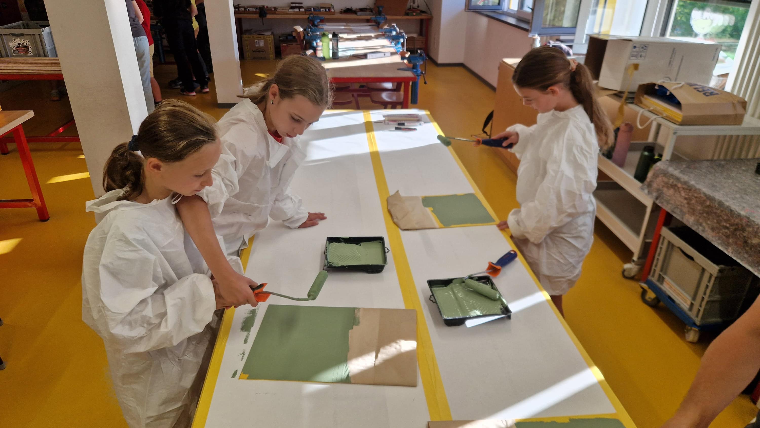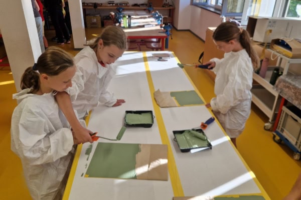 Letzte Woche erlebten die Schülerinnen und Schüler der Klassen 4a (dienstags) und 4b (donnerstags) einen lebendigen Einblick in die Welt des Handwerks. Unter fachkundiger Anleitung konnten die Kinder selbst entdecken, wie aus Ideen greifbare Dinge entstehen: Während des Tages bauten sie im Tischlerraum eine Grillzange, lernten beim Friseur, wie Flechtfrisuren entstehen, und setzten sich kreativ mit der Bordürengestaltung im Malerbereich auseinander.