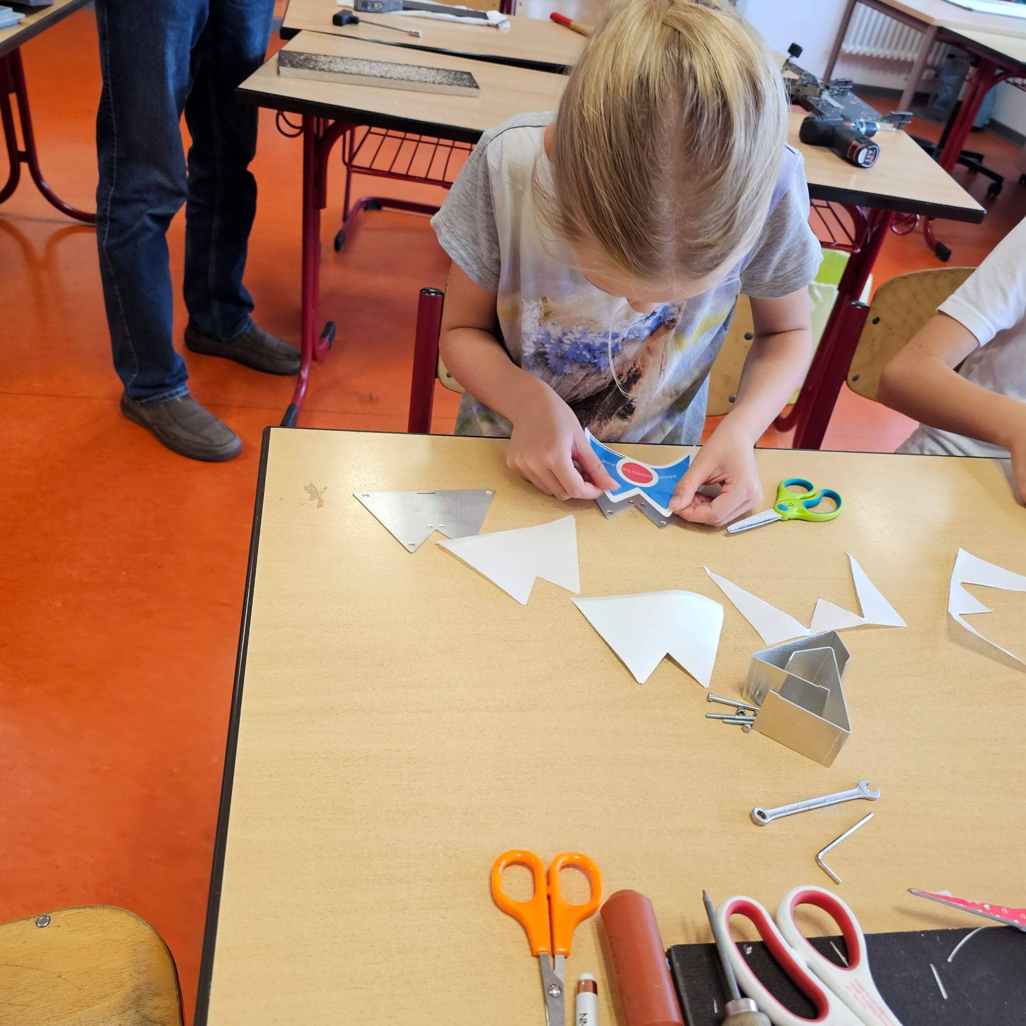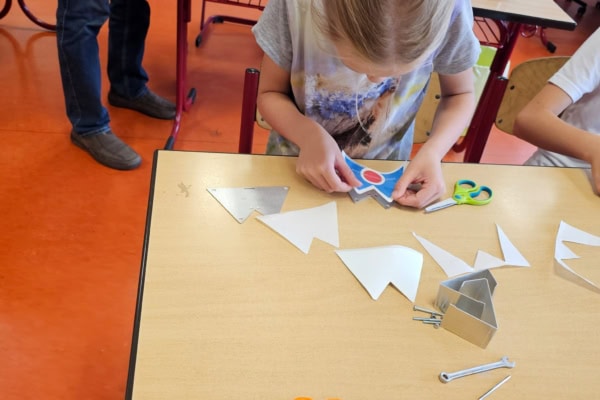 Im Elektrikerzimmer erfuhren sie die Grundlagen der erneuerbaren Energien, als sie ein kleines Windrad mit Solarmodul konstruierten, und im Metallbaubereich entstanden schließlich stabile Spardosen aus Metall. Die Kinder sammelten praktische Erfahrungen, verbanden Theorie mit Praxis und durften ihre selbst gefertigten Arbeiten stolz mit nach Hause nehmen.